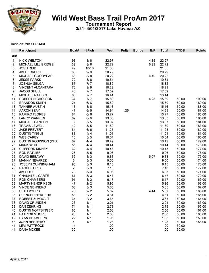 Click here for Pro Results http://www.westernbass.com/forum/post57 ... ml#p579611