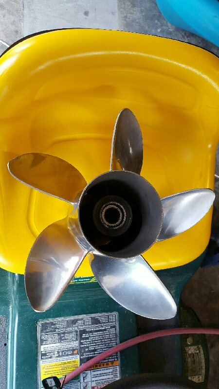 Have a used stainless steel prop in excellent condition. Just too big for our motor/boat.