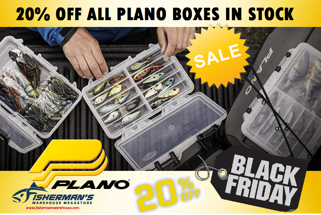 20% off all Plano boxes in stock at ALL Fisherman's Warehouse locations | Black Friday Sale Good Now thru Black Friday