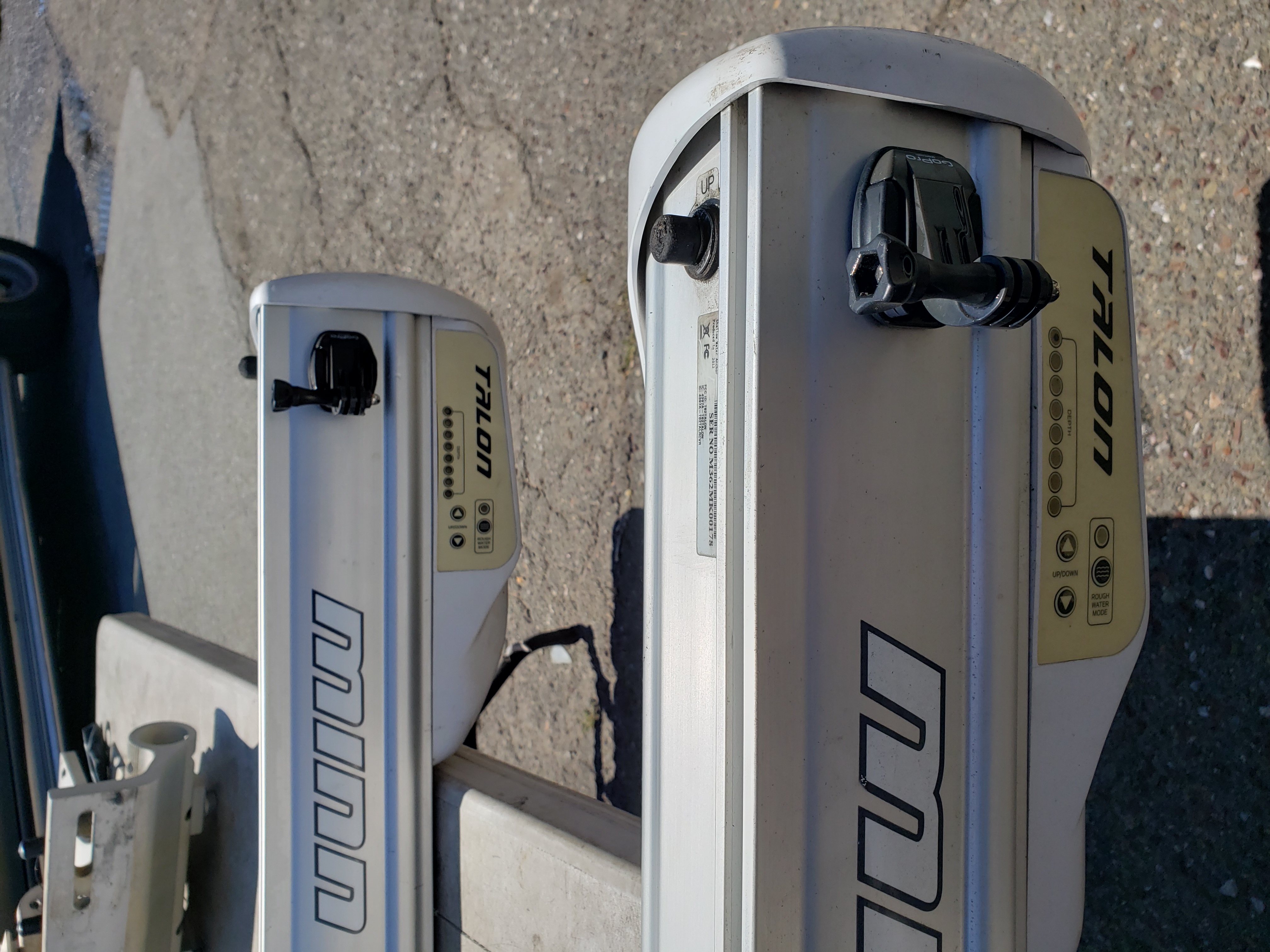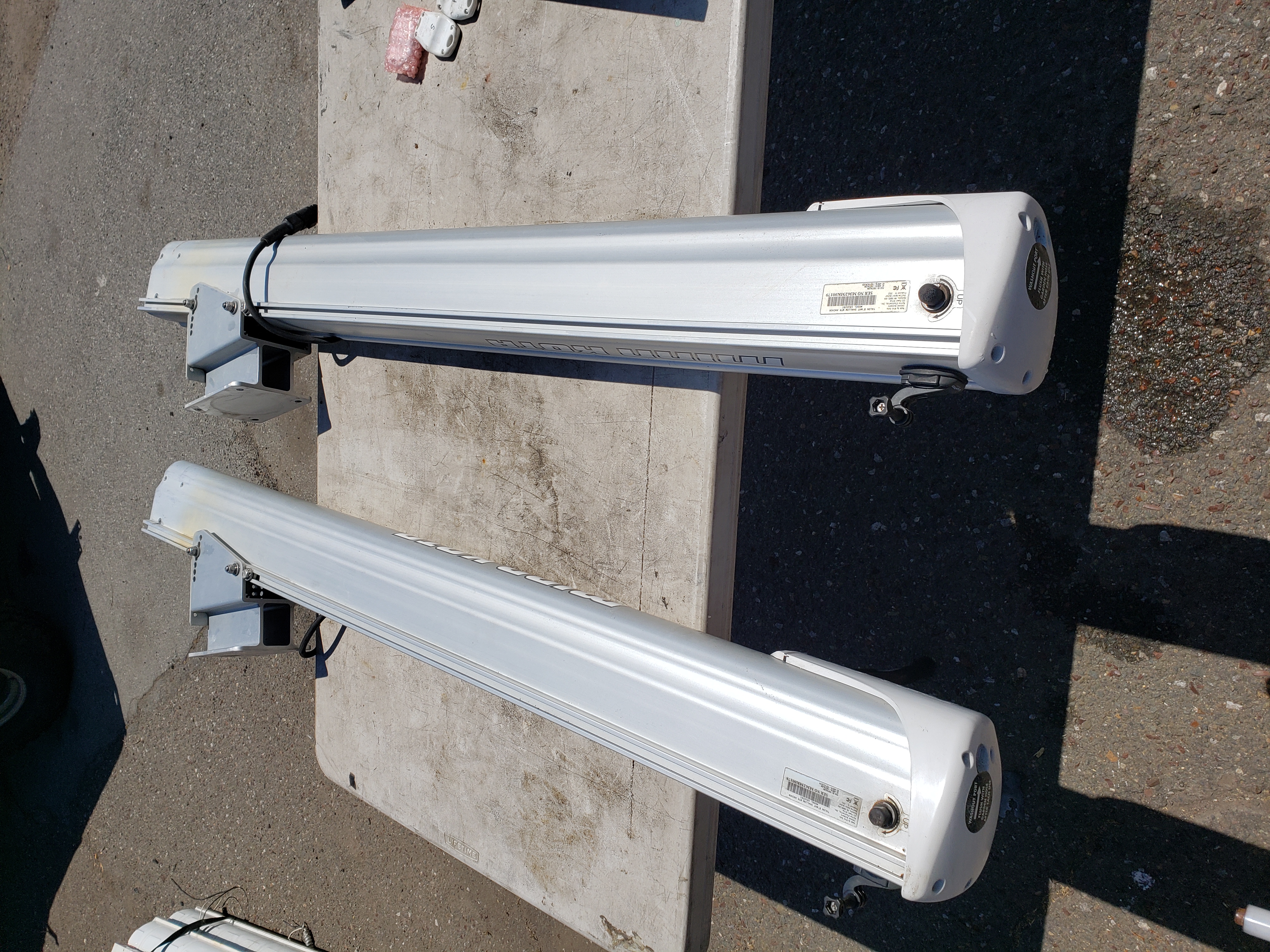 Only a year of use(blew boat motor and they have been sitting since). Will come with wireless remotes but will not come with brackets to attach to jackplate, just what is seen in pics