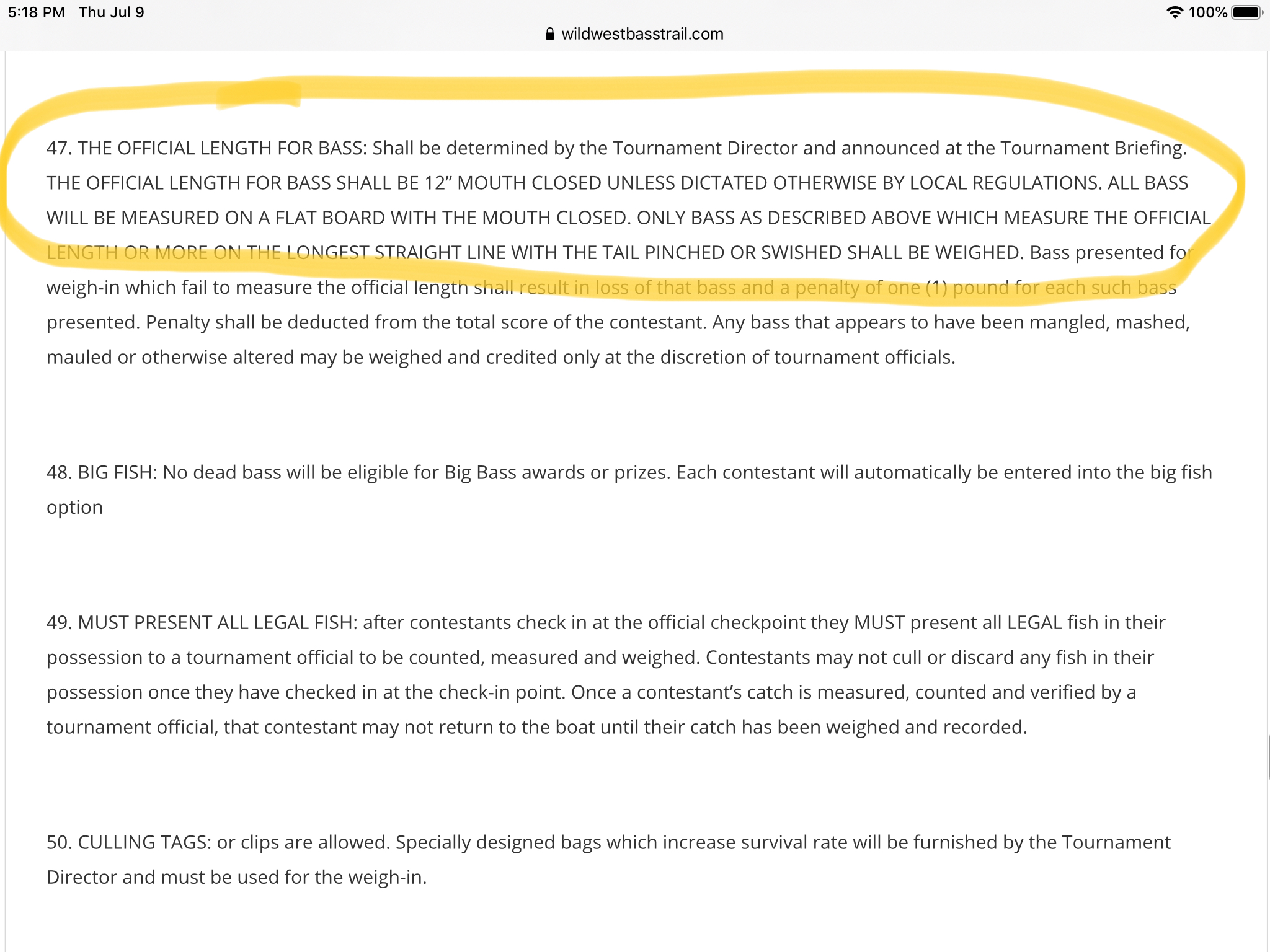 You can not take your Boat out of the Water till after you Weigh your Fish- No Trailering