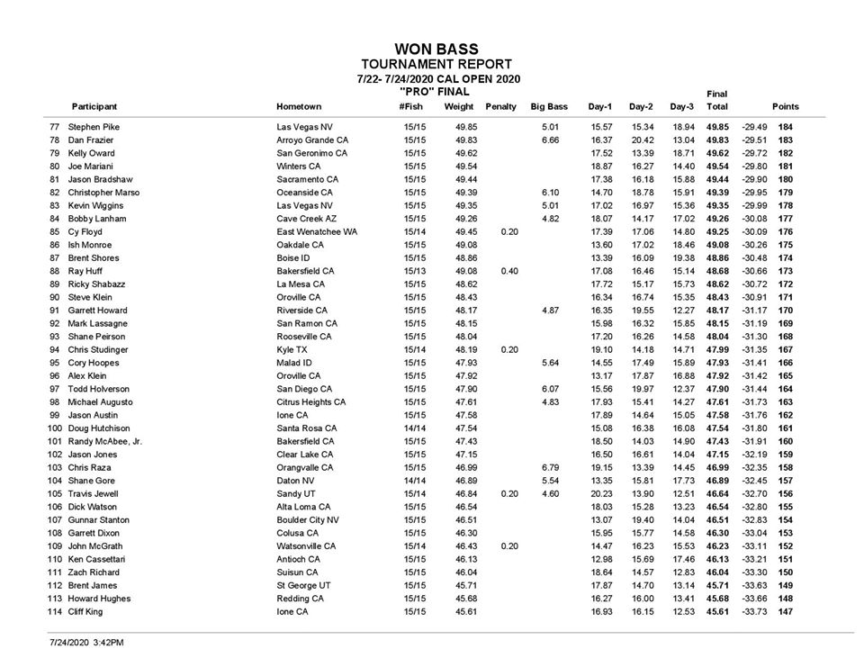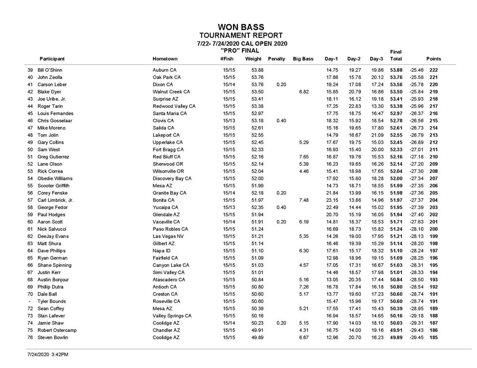 It very sad to look at the standings and see so many penalties next to so many names on the Pro side and AAA side. Anglers
