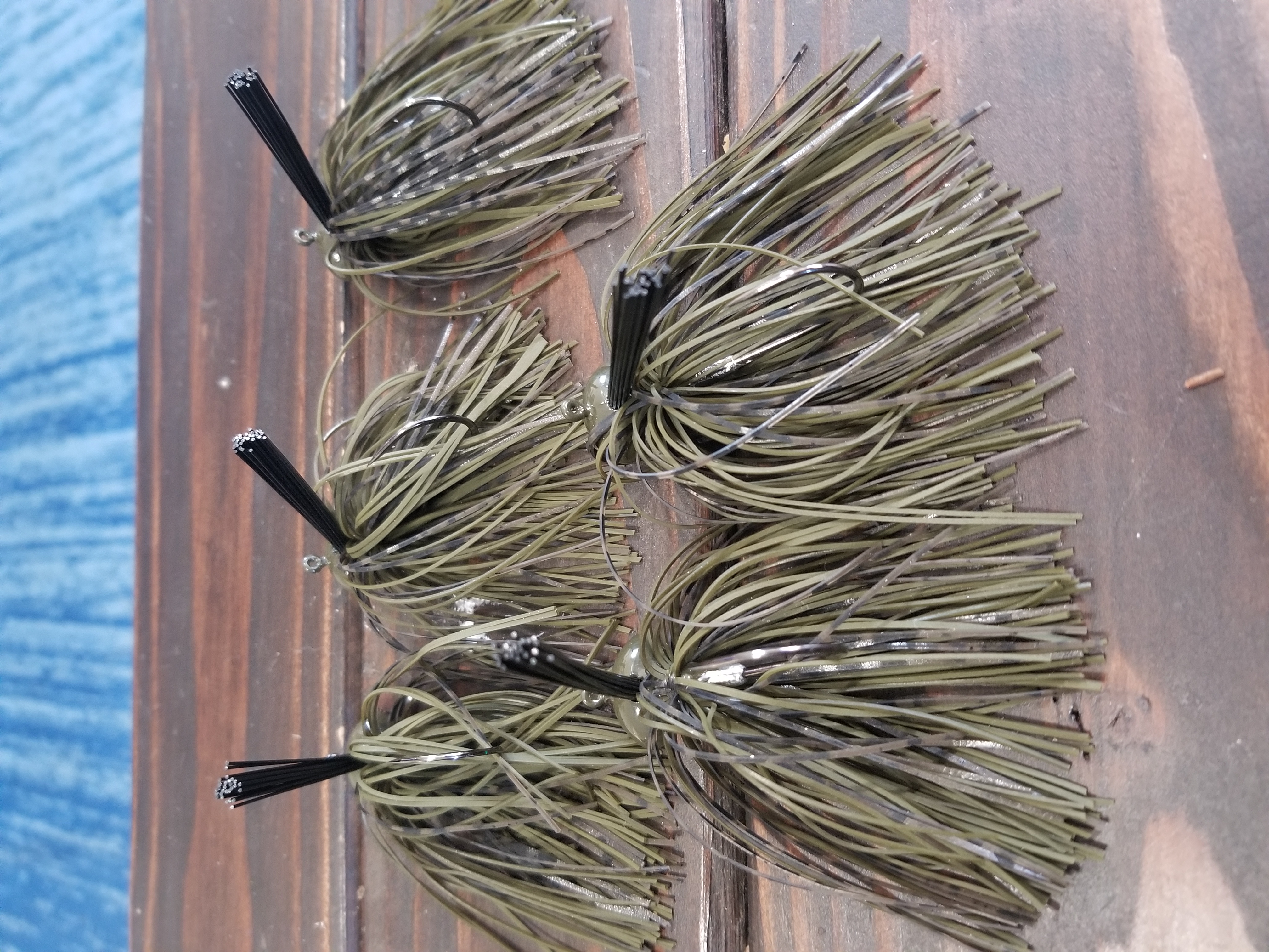 Can make anything from 3/8 to 3/4oz with three different style heads. Can do with or without weed guards and I have a stand up football head. For the jigs with a weed guard you can choose between standard mustad or light wire gamakatsu hooks. Without a weed guard you can choose between standard mustad, or light wire VMC or VMC sickle hook. Asking 3.50 for anything not with a gamakatsu and 4.00 with a gami. All jigs are hand tied. Here are a few from my last order. Feel free to request a color as well.