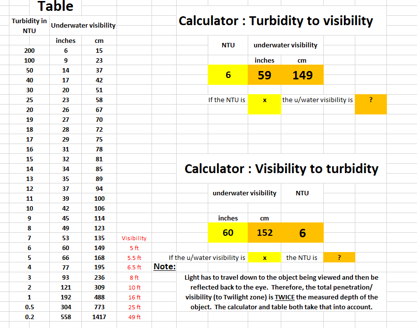 That link video is for water of high clarity (eg low turbidity........drinking water clarity) with visibility of 100ft or more.