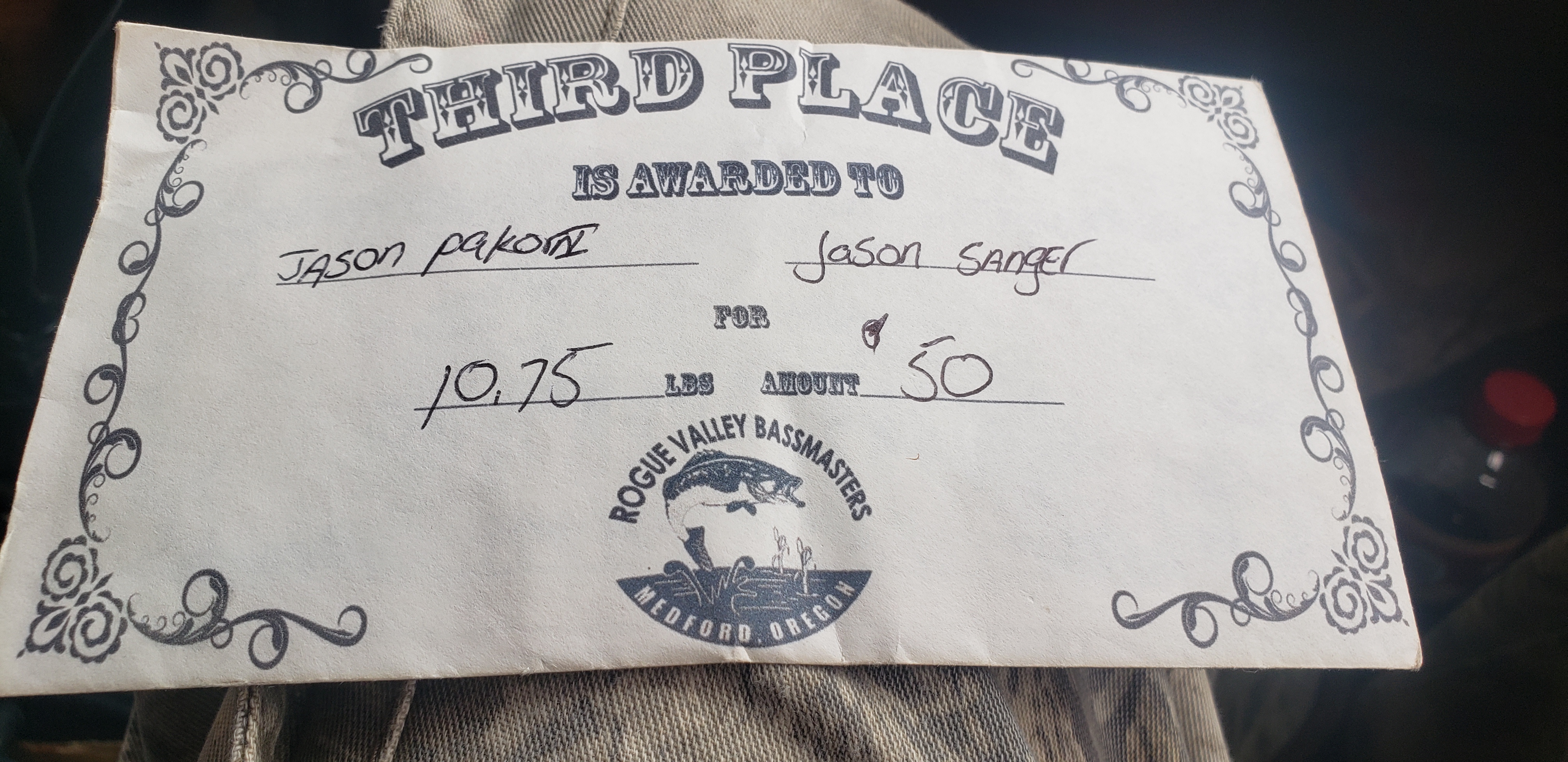 got me a suprise check this weekend, me and my pard fished hard all day and he caught a nice one early but we only had four and one was leaning on rat status, but chunky for rats... and i told him nope bud no way bud maybe you get lucky and your big one gets big fish today but no way did we place... but our four bested a few boats with limits to squeak us into third and get the last check of our day, one heck of a pleasant suprise to not have a limit but still get it done, ill not forget that anytime soon...