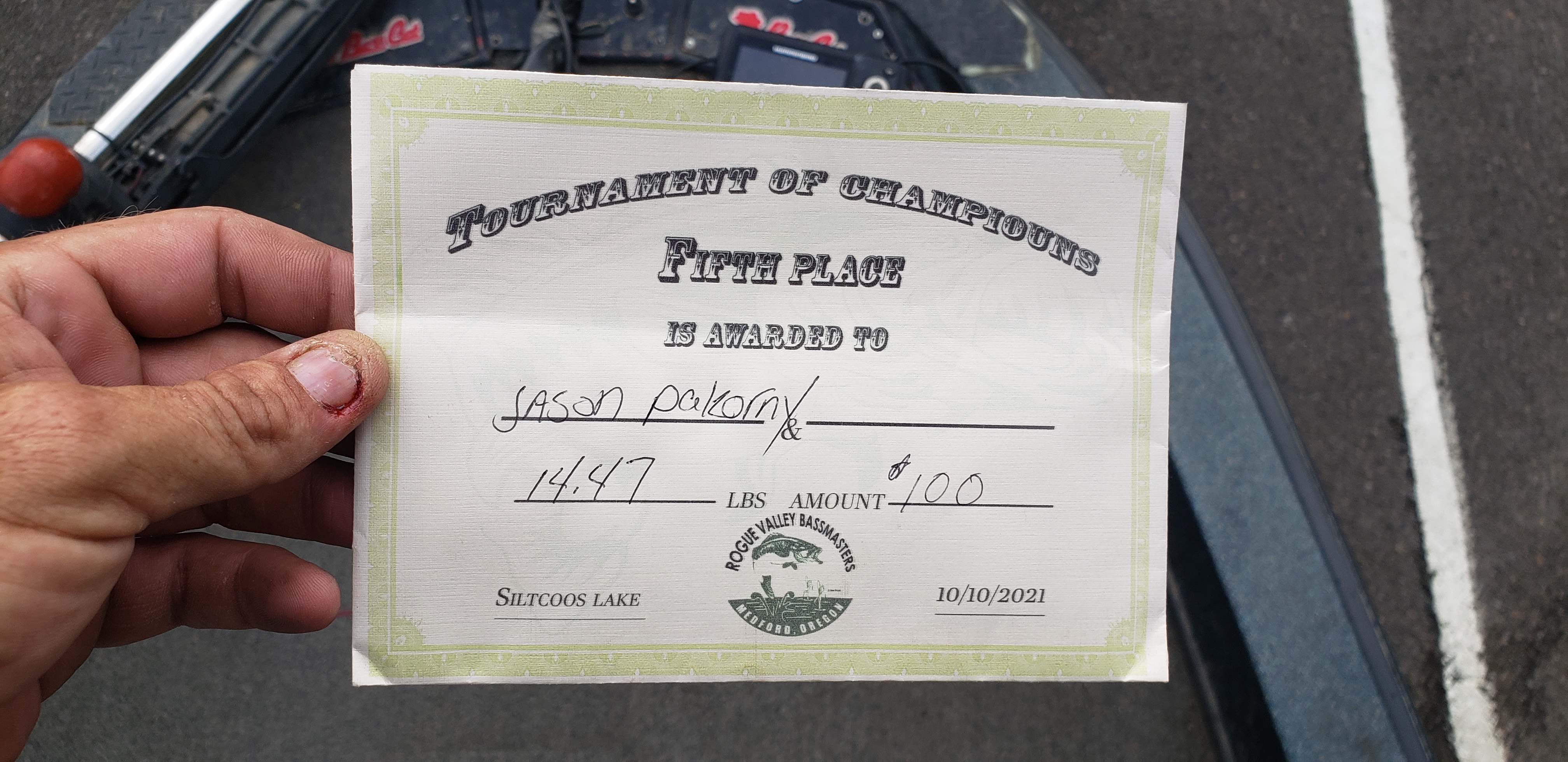 Pretty proud of cashing a check in my first t.o.c. wasn't the big days i hoped for but I made it in and than cashed a check, so thats a pretty good deal. I fished all year solo exception of the last tourney so I think I would do even better with a pard in the future but i did it all by myself vs quite a few good teams too. my practice fish had bailed and i had to go hunting for mine but found enough to get me the last check and a smile to go home on... wheres the next one guys, im not done chasing the wood...