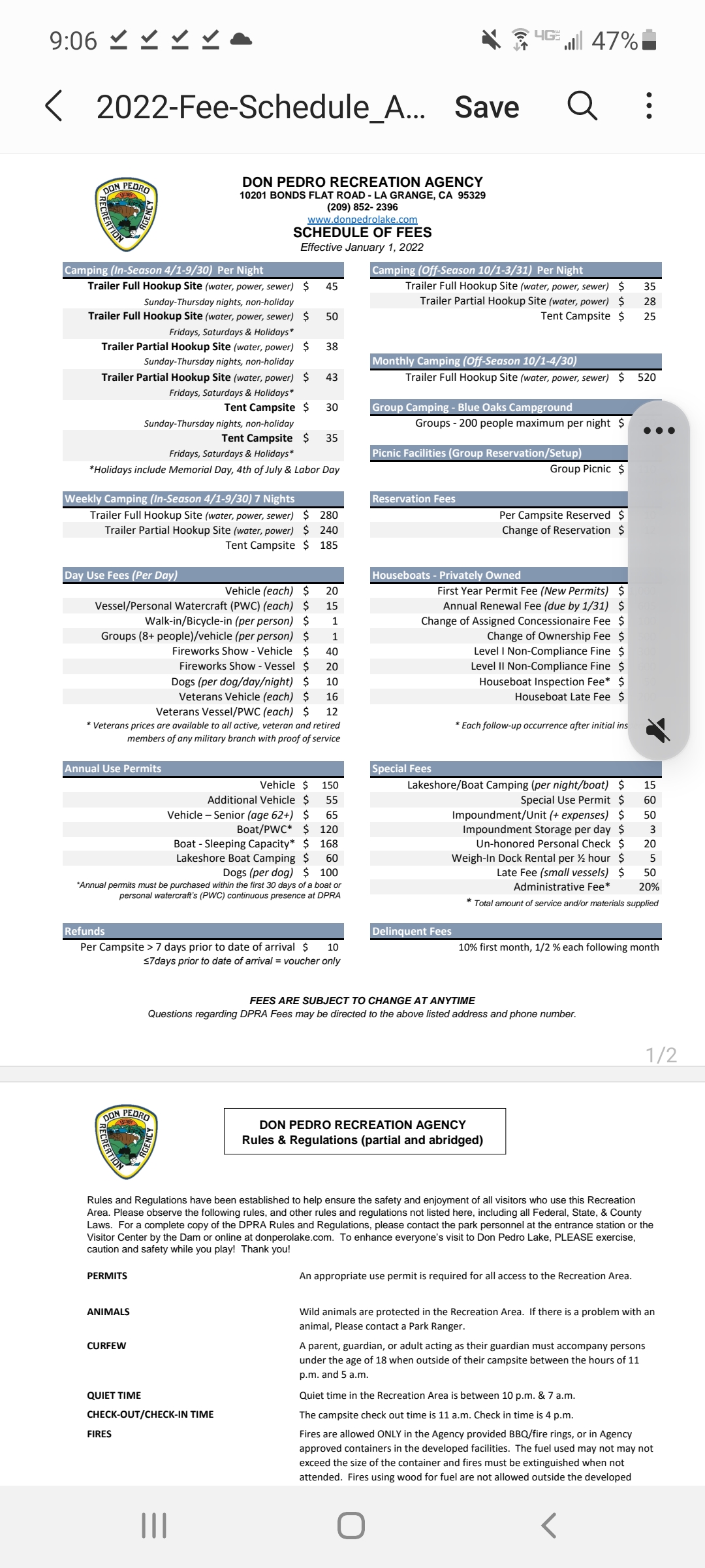 Please write emails of complaint to the above address for Ron Macedo, Director Turlock Irrigation District and board member of Don Pedro Rec agency. I just finished sending one. Tournament directors should consider alternative lakes. Inflation is one thing but to jump to $35?