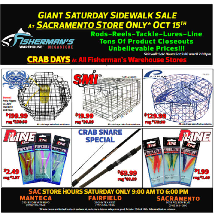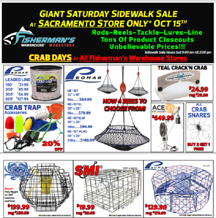 OCTOBER SIDEWALK SALE AT FISHERMANS WAREHOUSE SACRAMENTO ONLY SATURDAY ONLY!!!