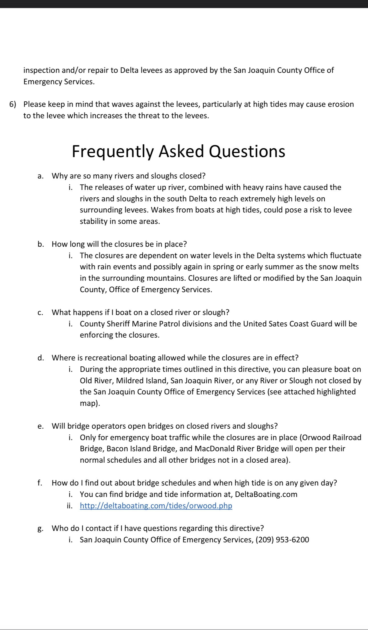 Re: Delta Closures San Joaquin County