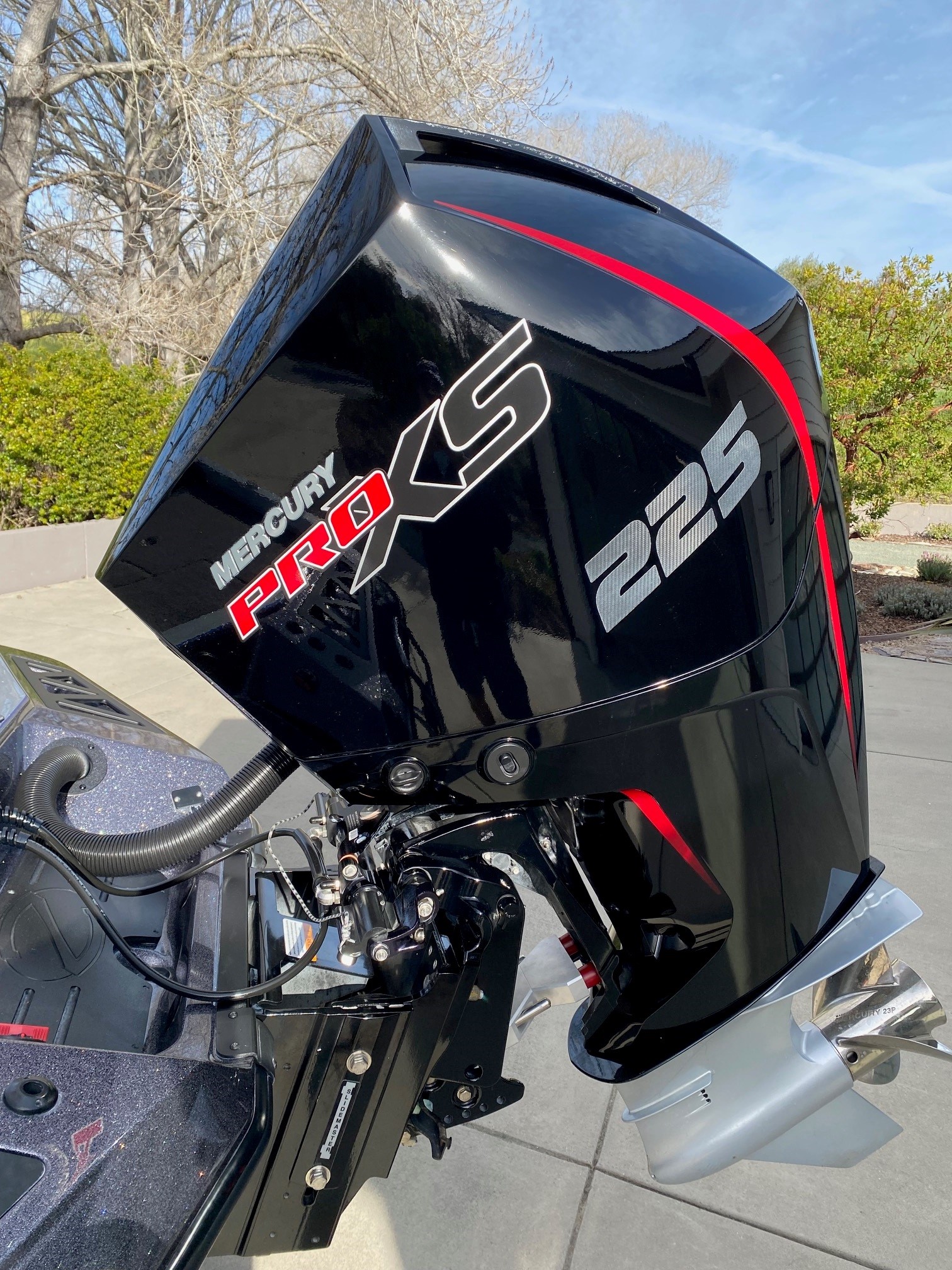 94 hours on 225 HP Merc 4-stroke (73 MPH) Stainless Steel Merc prop, power trim, hydraulic steering, 10" Slidemaster set back plate, 36V Minn Kota Ultrex GPS Pilot Trolling Motor, recessed trolling motor foot pedal, motor trim switch at front deck, console & at motor, Minn Kota Precision MK 460PC battery charger, 4 batteries, 3 Garmin sonar/mapping units (GPSMAP 8610XSV, GPSMAP 8610 & GPSMap 922) + Panoptix Live Scope with GLS 10 Black Box & LVS32 -- (Garmin electronics package allows Panoptix LiveScope, side imaging, down imaging, traditional sonar, mapping, waypoints, temperature readings, speedometer, etc...), custom console Bass Tech bracket, dual bike seats, remote drain plug, Pure Oxygen aerator, retractable rod buckles on front deck and at 2nd console, Two 8' rod lockers at front deck, 26 gal livewell, single axel Ranger trailer with matching fiberglass padded step-on fenders and custom padded front step near tongue, retractable trailer tie downs, swing-away trailer tongue, center swing jack, hydraulic surge disc brakes, Cool Hub lubrication system, Aluminum wheels with matching spare, Ranger Boats Road Armor trailer protectant, LED lighting, 12v DC power receptacle, Stainless steel tie cleats & bow/stern eyes, stainless steel compression lid locking hardware with gas assisted springs, slide in tournament measuring board, Custom Ranger boat cover with tie down straps.