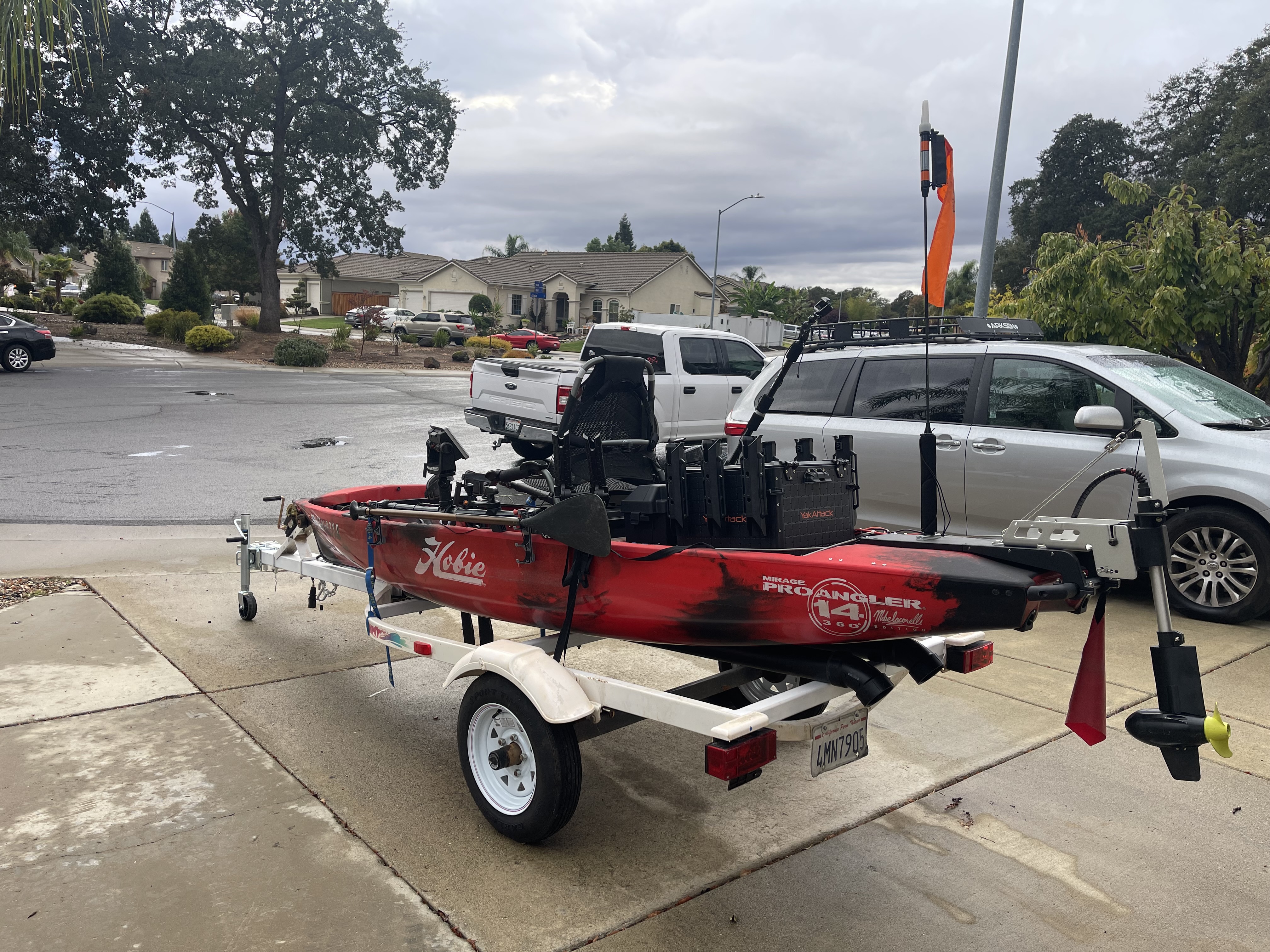 Here are the details. Selling my tournament kayak setup. I also have a custom made kayak trailer, tackle trunk, motor and battery plus some extras for sale as well. Prices are included below. I bought this in January of this year. Used less than 20 times. Still in great condition!! If you are looking for a turn key tournament kayak setup this is it. Goes on average 5mph with the Newport motor. Kayak is registered with DMV through new year. Lowrance graph not for sale.