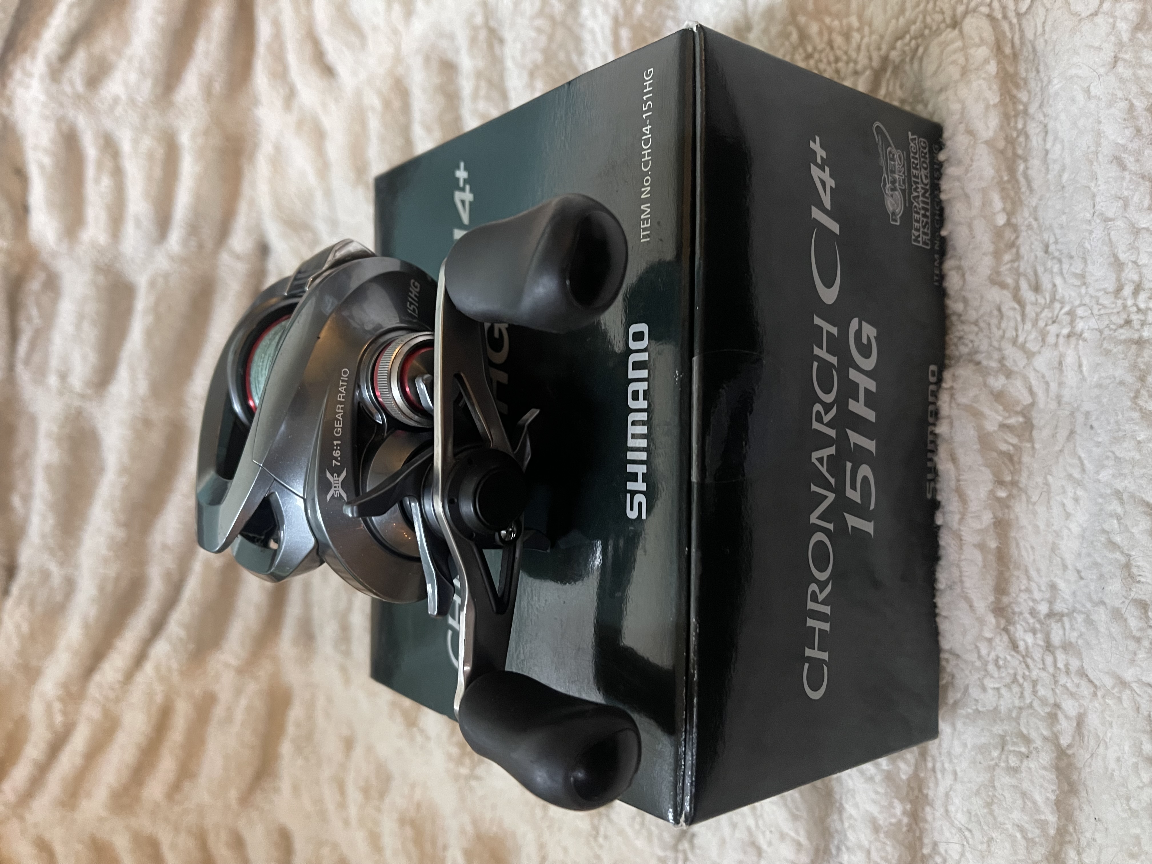 Shimano Chronarch Ci4+ 151hg 7.6:1 gear ratio excellent condition, Includes box, paperwork, and spare brakes.