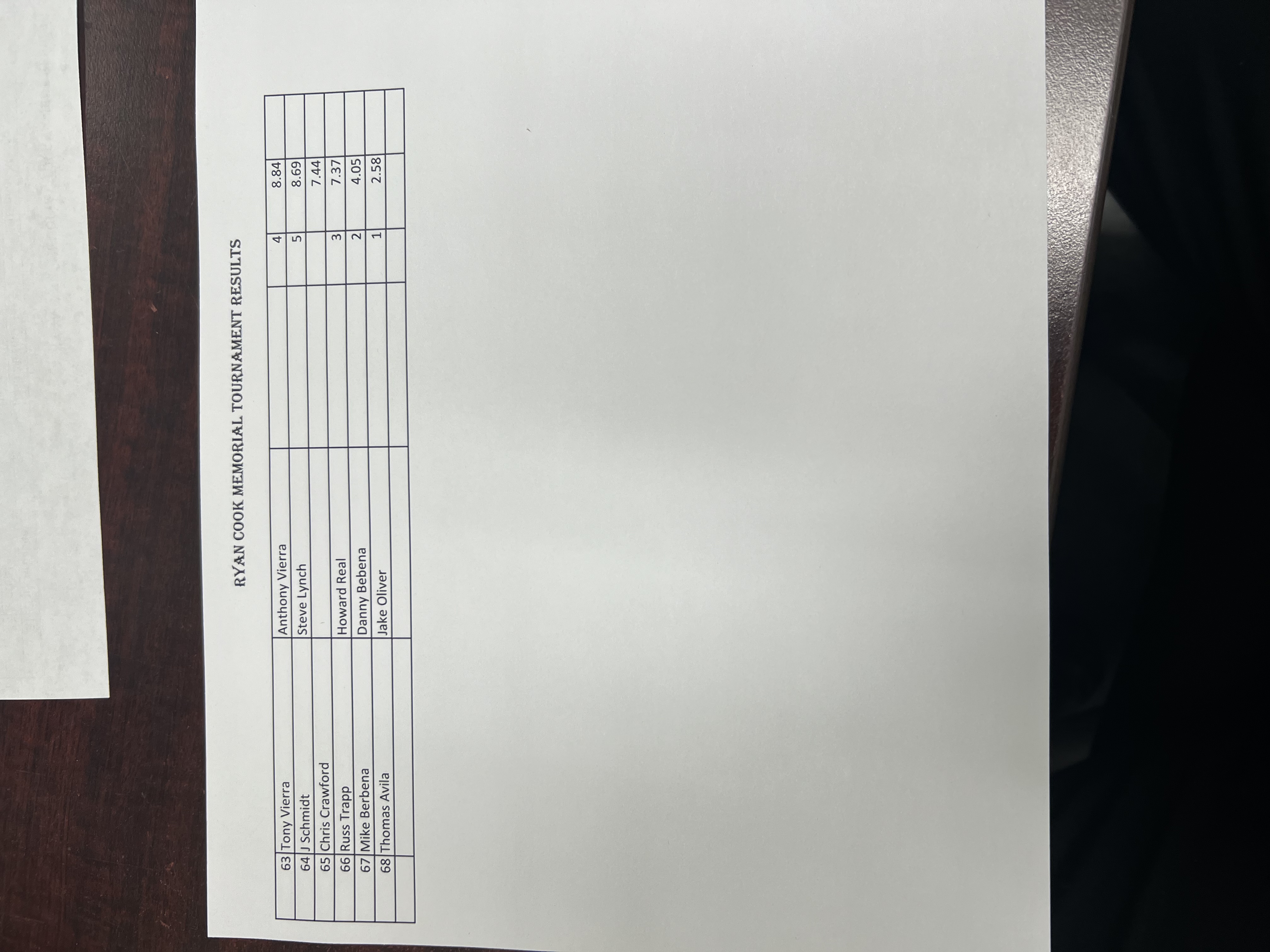 Re: Ryan Cook Memorial Tournament