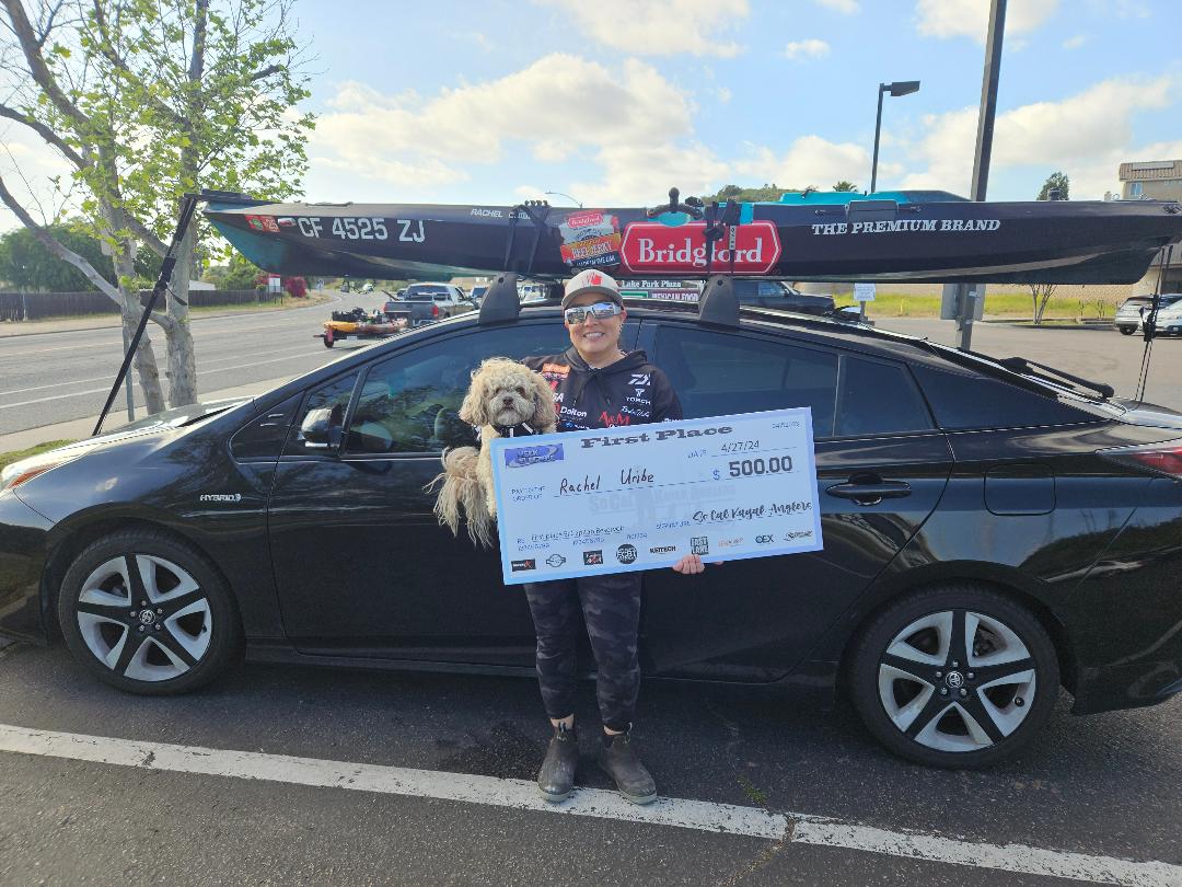 Rachel Uribe is the champion at El Capitan Lake with an impressive 86.25” besting second place by 1.75”. Uribe used a drop shot rig to catch her winning limit. She started close to the ramp and caught a nice 20.00” fish on a Morning Dawn Robo worm with a 3/16-ounce Voss drop shot weight 10-pound test line with her Daiwa Tatula drop shot rod.
