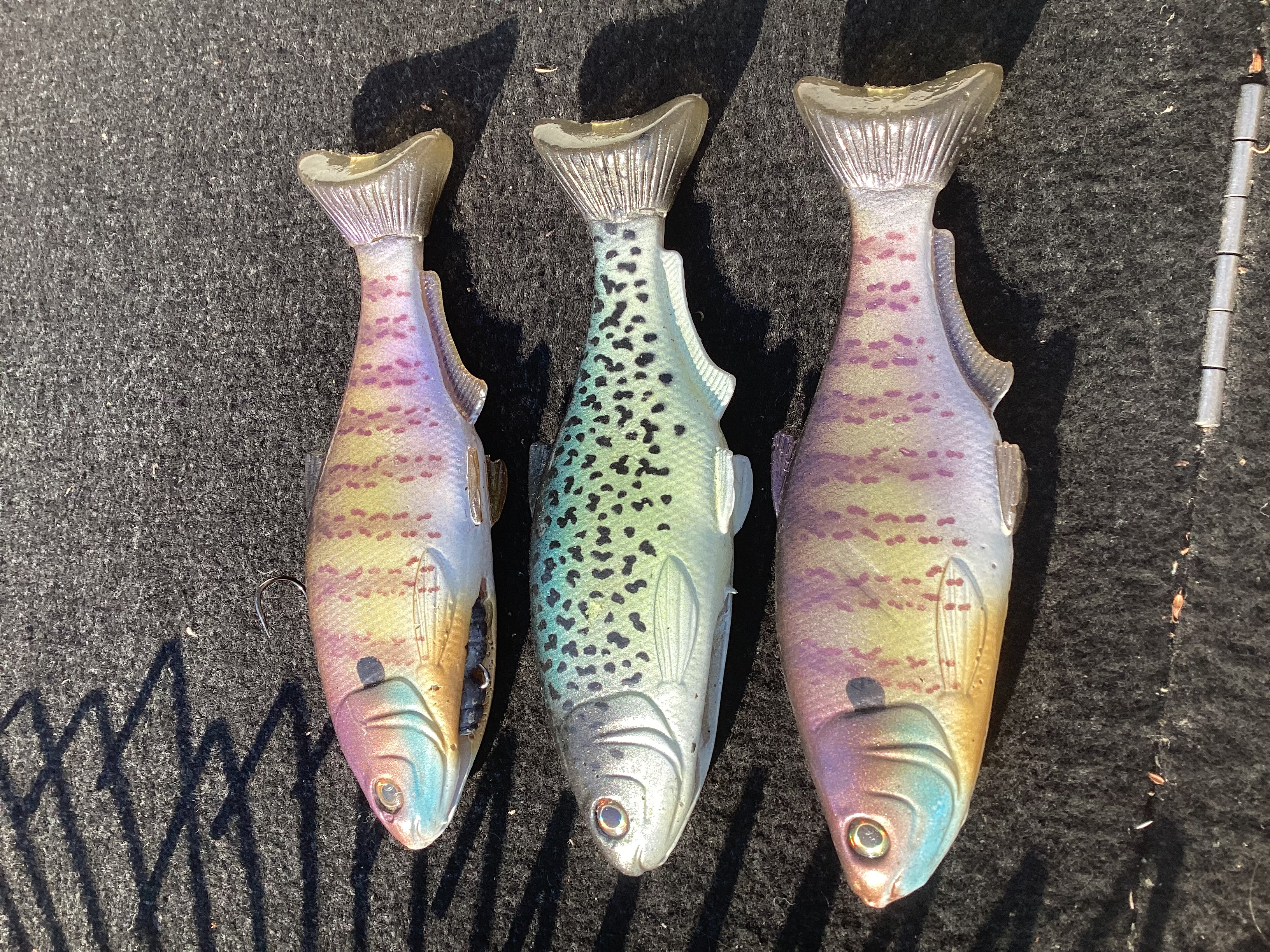 Up for sale are “3” Nate’s line-thru swimbaits. These are 7”. There is “1” harness included. These retail for 49.99 each & the harness retails for 19.99. $110 for the lot TYD. Message me