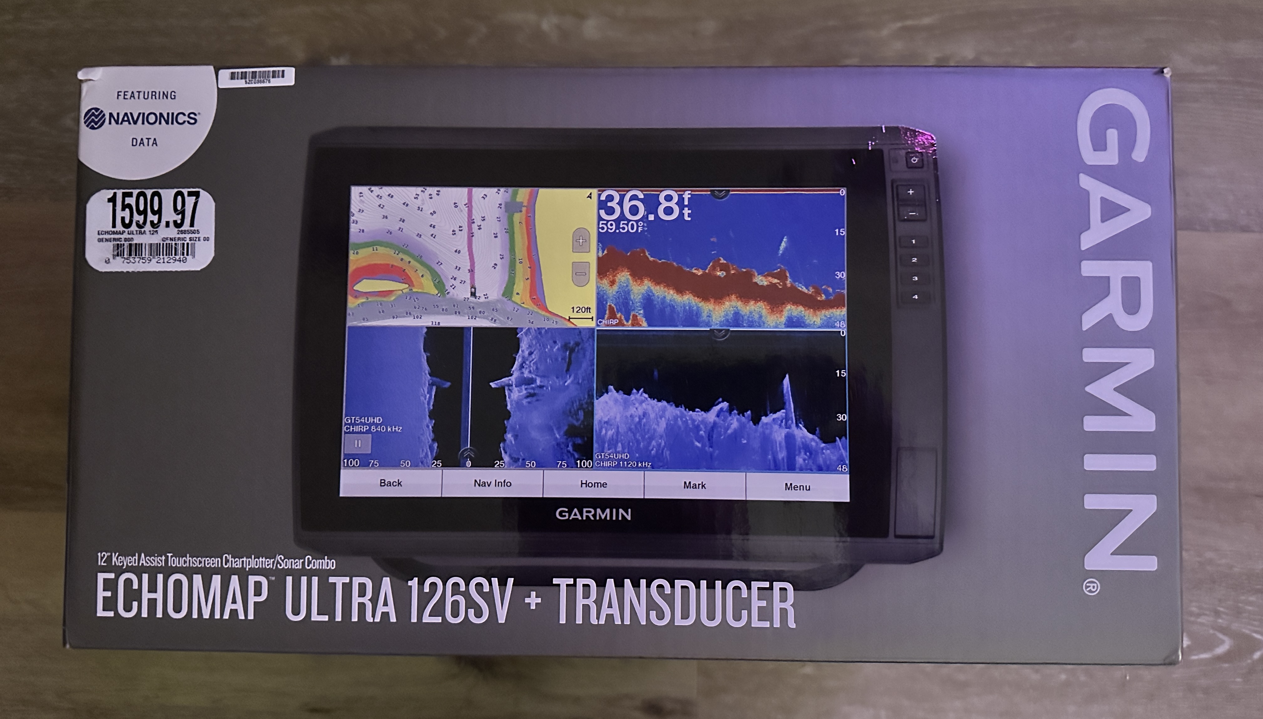 Brand new Garmin 126SV w/GT-54 Transducer. Purchased from Bass Pro this month. Contents removed just to take pictures.