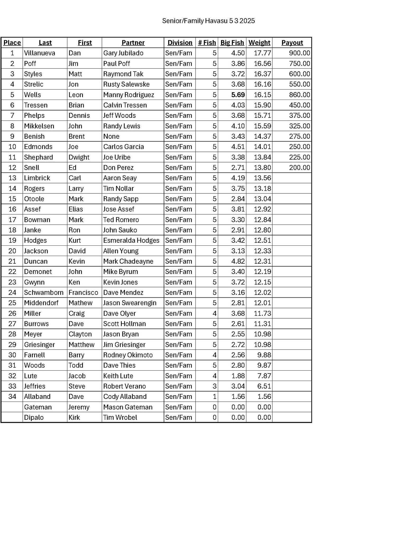 Final Results and Payout for our Owners Invitational Tournament Series Year End Event at Lake Havasu. Thank you to all our great Customers who make these events possible. Thank you to Mercury Marine and Ranger Boats for all their support with the Grand Prize Boat Motor and Trailer package. Big thanks to Land and Sea, Rapala, MegaBass, GSM/Yamamoto, 5150 Worms for all the great raffle prizes. And a final Thank you to Balboa Thrift and Loan for their help sponsoring the Anglers Of The Year Awards in each division. Congratulations to the Gateman Family on winning the Boat Package, an awesome ending to a fun year!