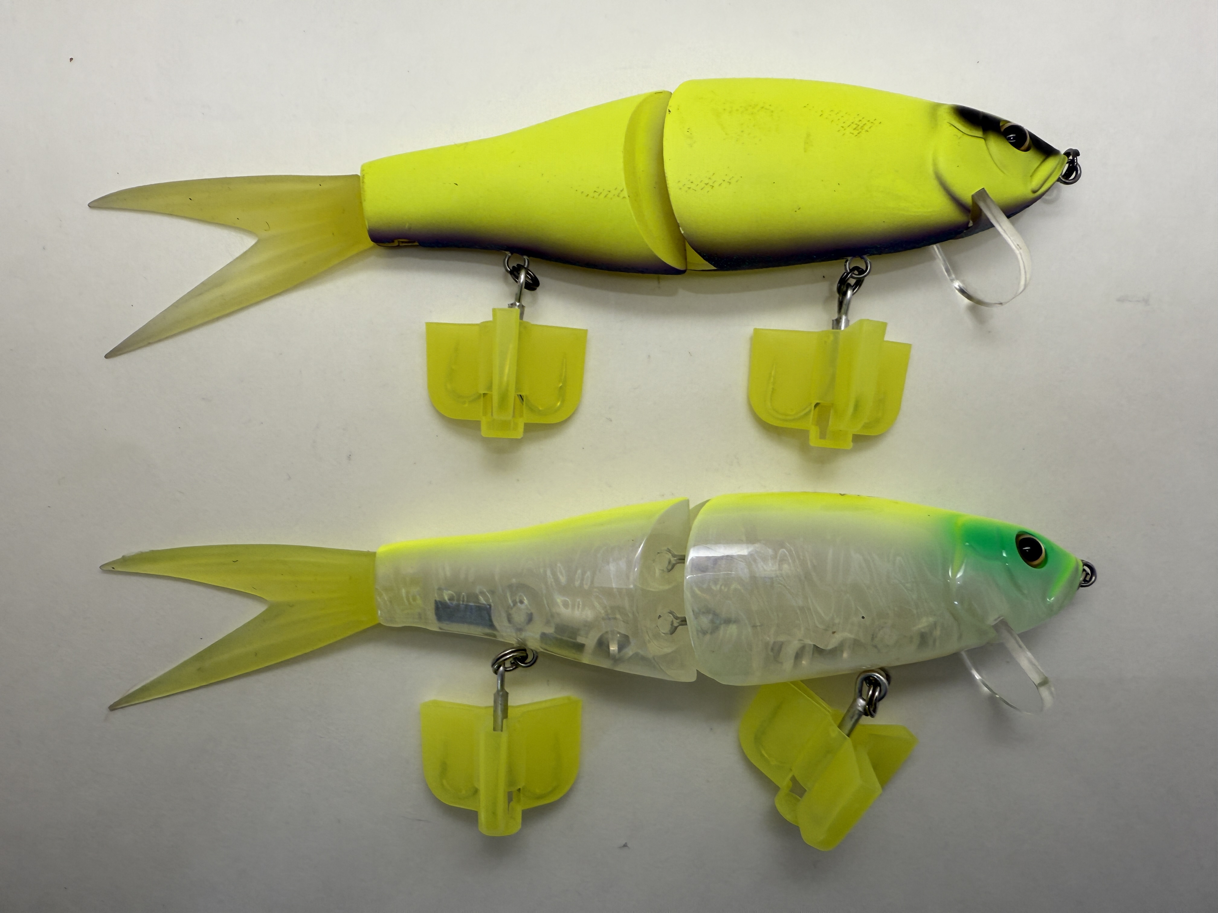 For sale is a lot of 6 baits. The 3 swimbaits are from a collaboration between DRT and Fish Arrrow and have been very lightly used. The Toxic Baits are lightly used. The Delta Dummies have been used.