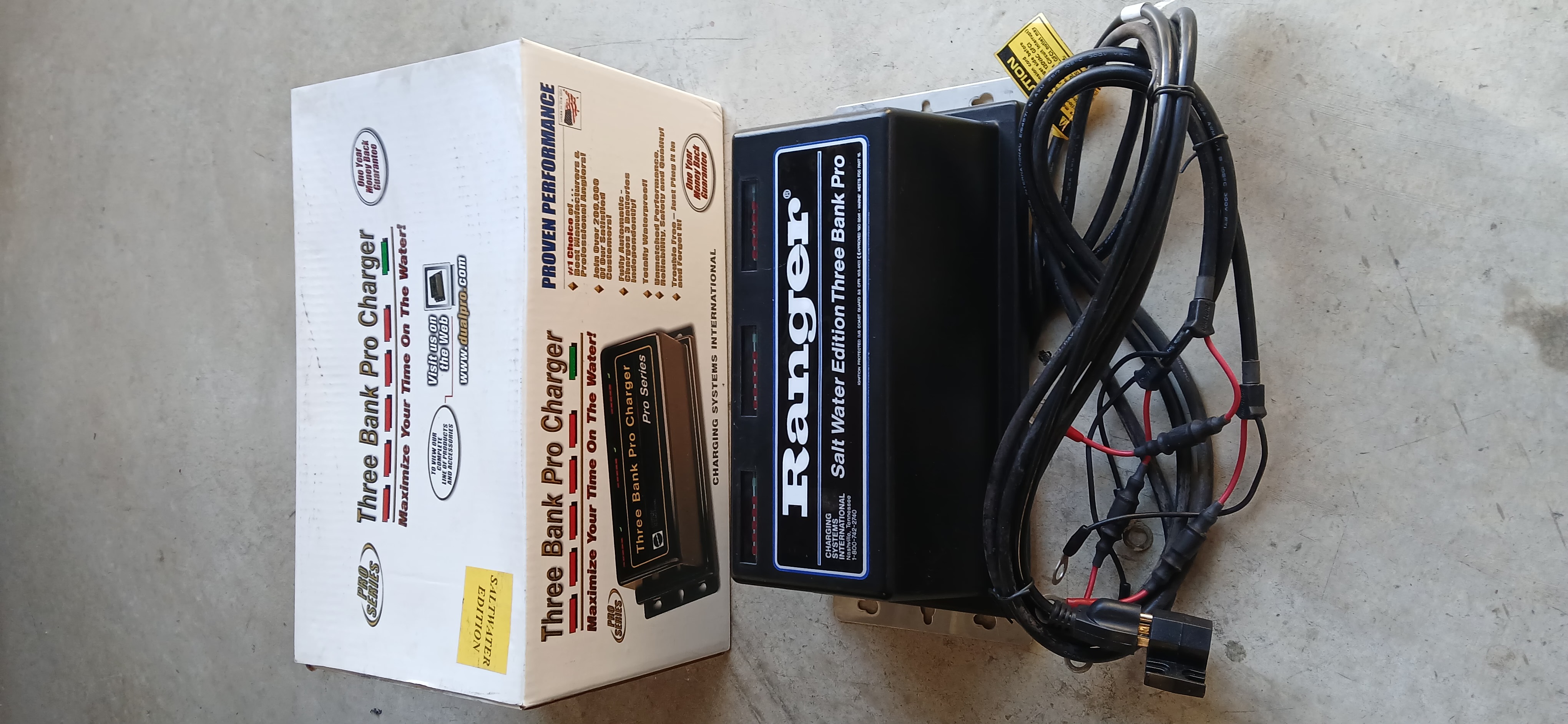 Selling Ranger Saltwater Edition Stainless 3 bank charger. Provides 15amp/bank output. Designed to be mounted in your boats battery compartment. Works perfectly! $125.00 OBO Will ship at your cost or can deliver to neighboring counties of Solano.