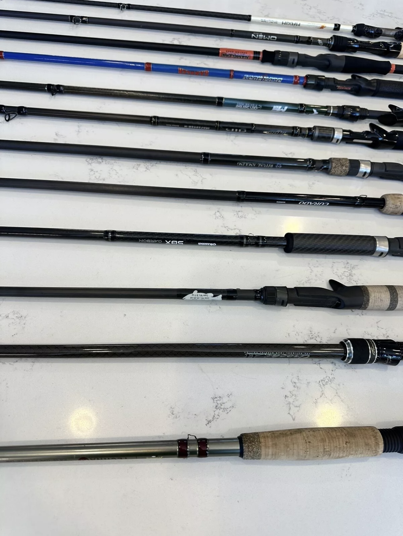 12 rods total Text only (909) 868-8154 Local pickup or trade only Riverside, CA 1) Fenwick Techna 8’0” Heavy-Fast 2-8oz 2) Mega Bass Orochi XX Leviathan 8’0” 2-8oz 3) KGB Swimbaits XH 7’11” 3-7oz 4) Okuma SBX XH 7’11” 2-10oz 5) Shimano Curado XH 8’0” 3-6oz 6) Ritual Angling Mod Fast/ Heavy 7’11” 1-5...