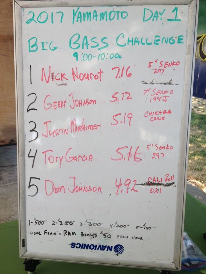 - Topic: 1 p.m. Hourly Winners Day 2 | 2017 Yamamoto Big Bass Challenge 3rd Hour Won and 2nd 9 Weighed by Hellesan
