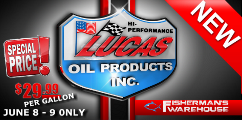 Fisherman's Warehouse is now carrying Lucas Oil Products and that during the sale 1 gallon oil is $29.99 regular $37.99