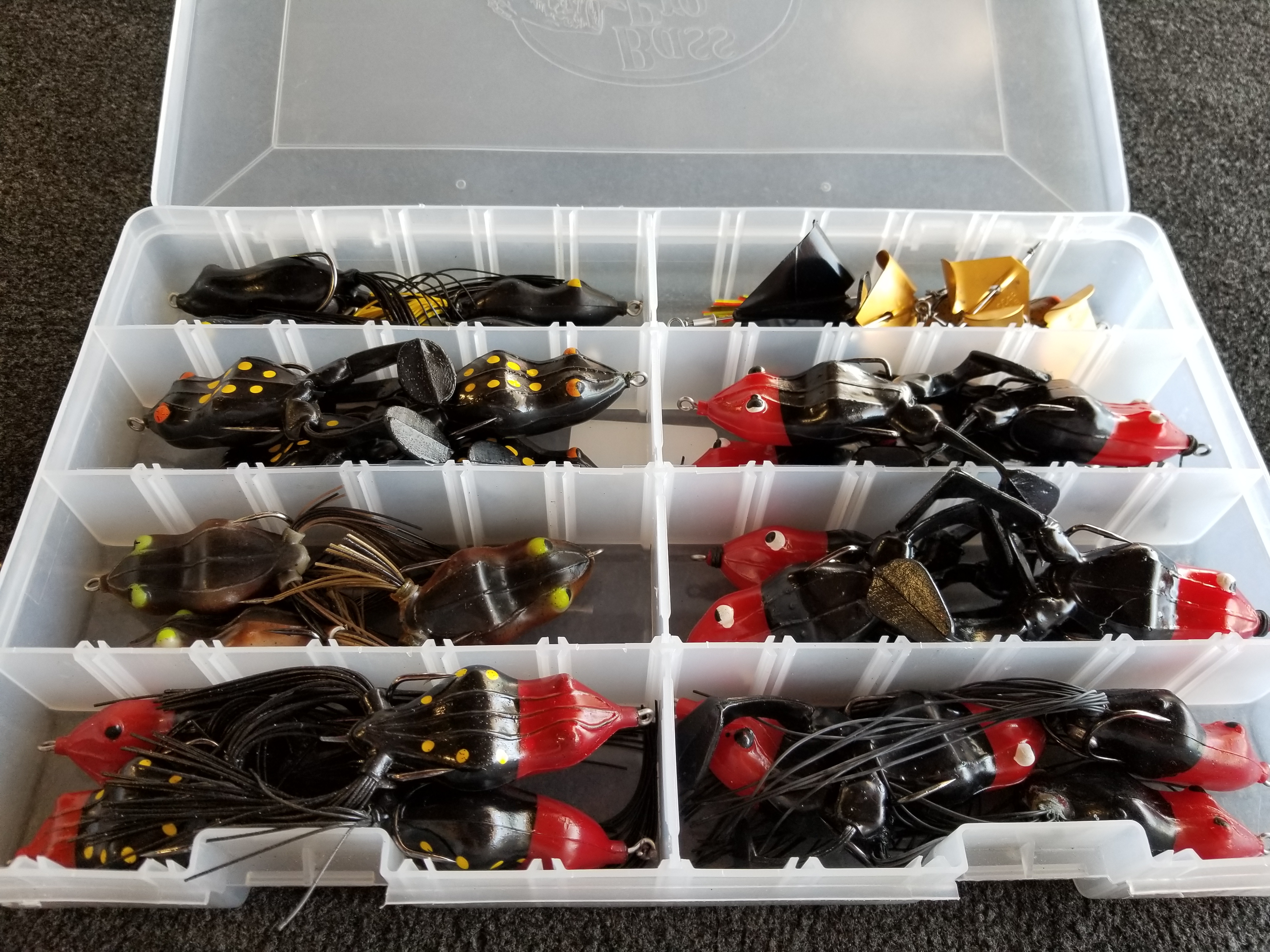 This lot includes 30 frogs. Mostly new, some have been modified but not used. You get all of them plus the tackle box. $225 OBO. Test Dan at 925-642-4663. Will ship for actual cost.