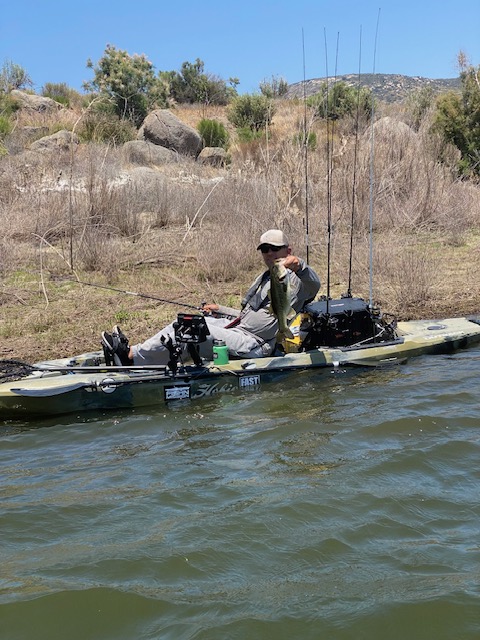 SoCal Kayak Anglers had their Tournament of Champions (TOC) at El Capitan on day one and Lower Otay on day two. Steve Buechner won with an impressive two-day total of 161.00”. Buechner started his day one throwing a Senko but only caught one fish measuring 17.00”. He found a pod of schooling fish and used a small rattle trap to fill his limit.