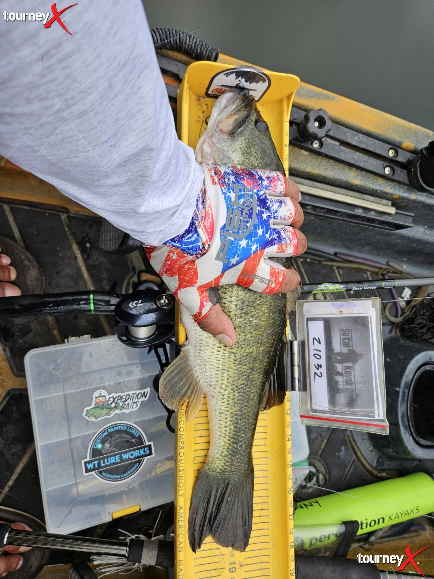 “I had a 12 and a 13-inch fish that I knew I could cull.” said Buechner, “I then caught a 15” bass at 2:30 PM culling 3 inches and then at 2:45 I culled again which put in in first place with .50” more than second place.”