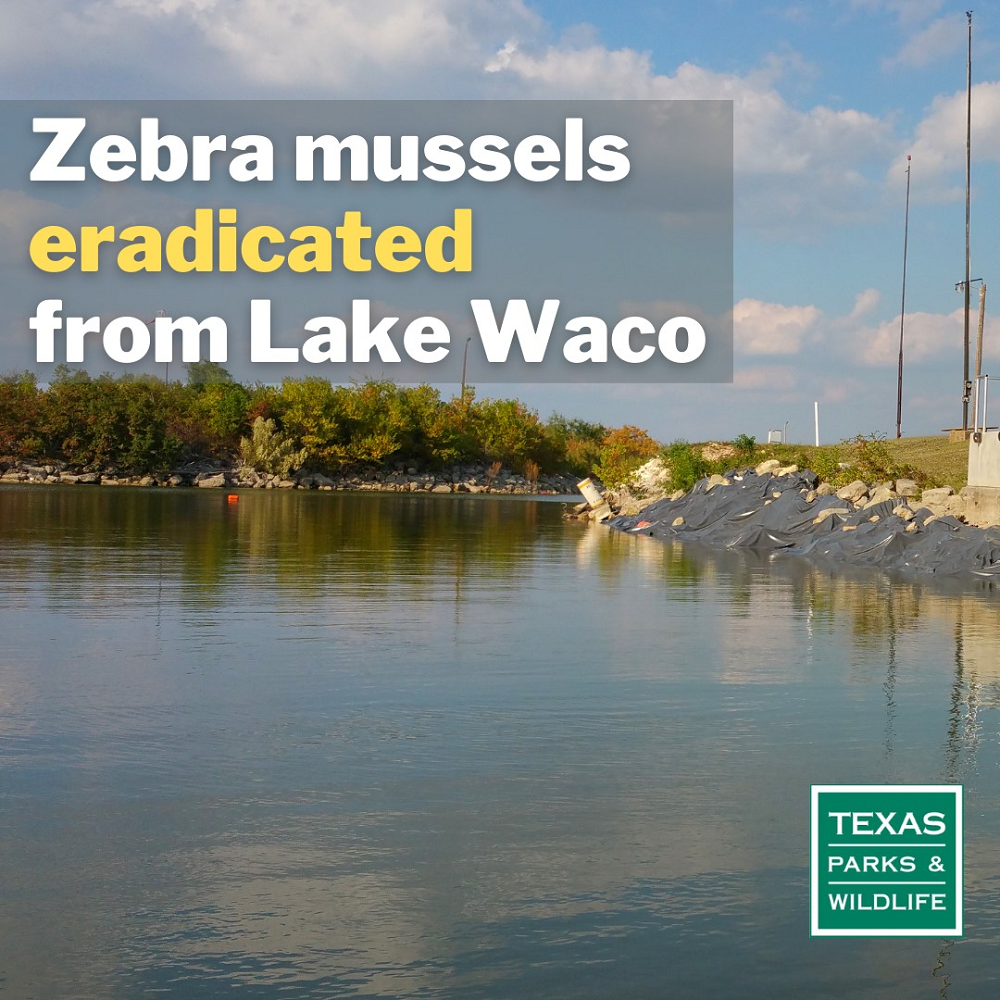 Fisheries biologists cautioned that eradication of the invasive mussels is extremely rare and was made possible only by very early detection and a multi-agency rapid response effort. Zebra mussels were discovered at Lake Waco in late 2014, but quick action at the time killed many of the mussels and helped prevent further spread, which eventually led to the eradication.