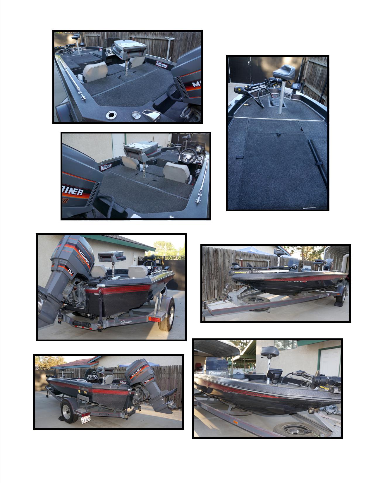 Minn Kota fishing motor, 2 - Hummingbird fish finders, 2 - live wells, single console, single axle trailer