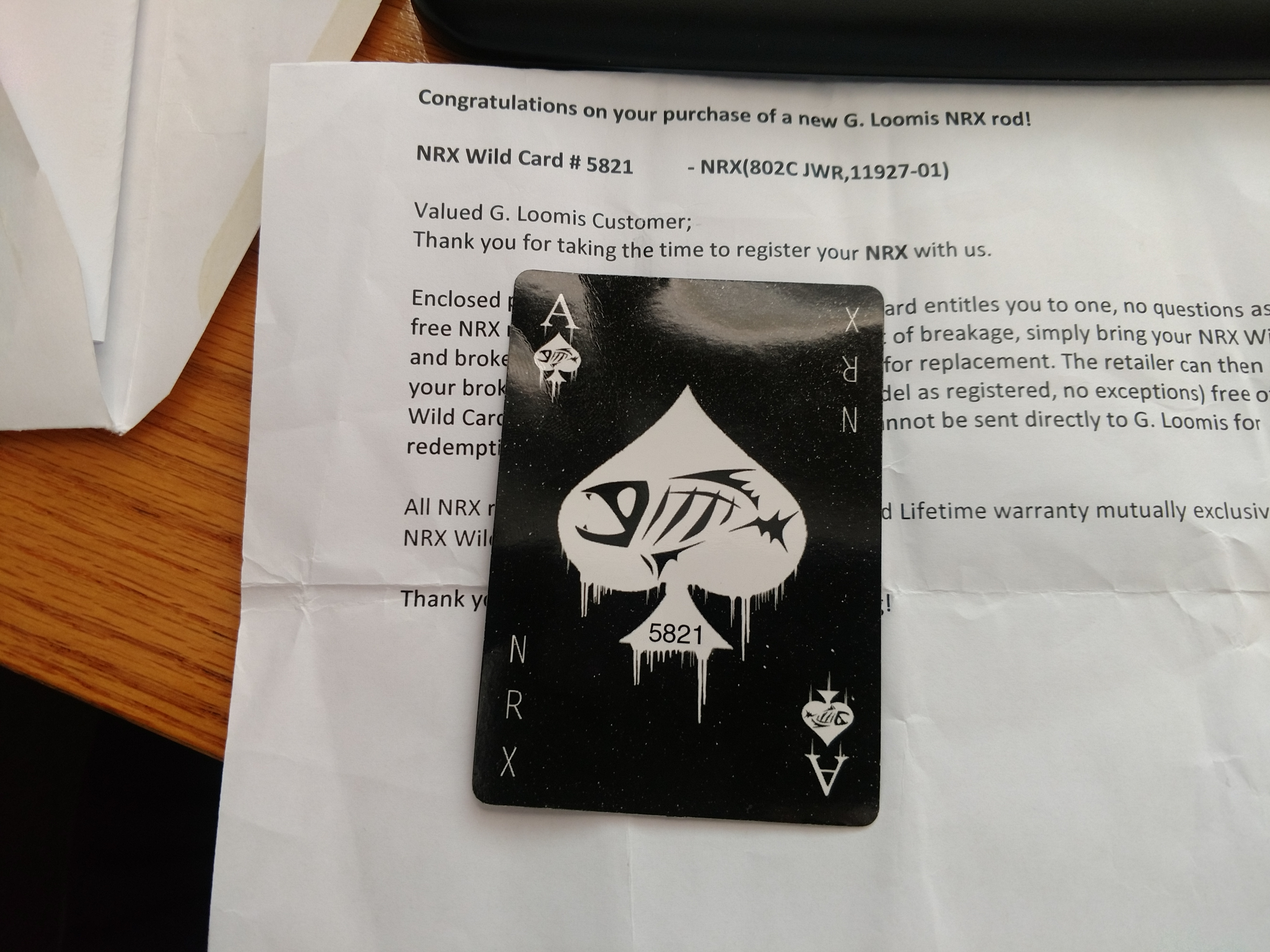 I HAVE 1 WILD CARD LEFT OVER FOR RODS THAT I DON'T HAVE ANYMORE. THESE CARDS ARE GOOD FOR A FREE EXCHANGE OF THE NRX ROD WITH NO QUESTIONS ASKED. THEY ARE ROD SPECIFIC SO IF YOU HAVE THE CORRESPONDING ROD THIS CARD WILL WORK FOR AN EXCHANGE.