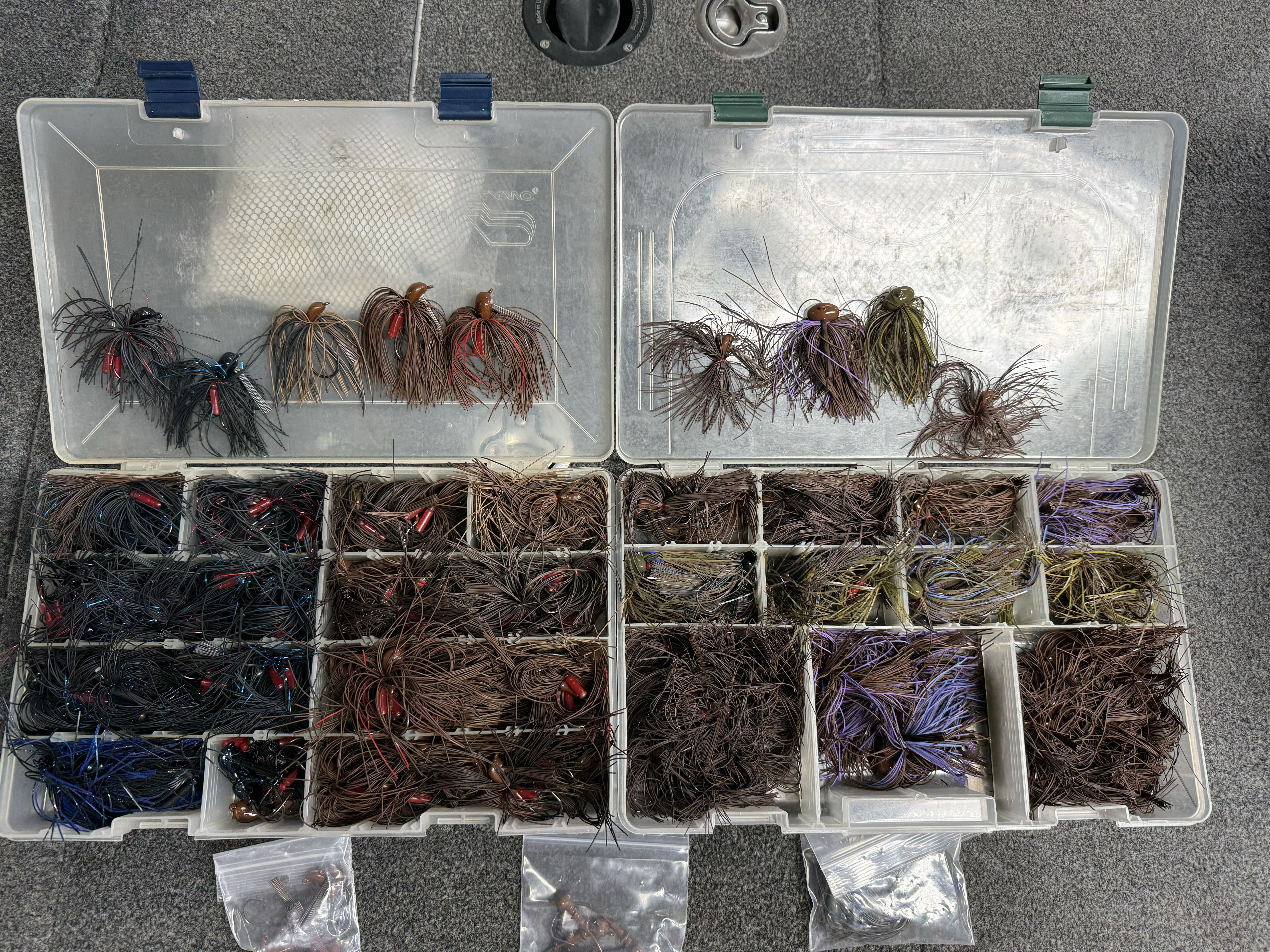 Same here ive got 10 boxes of jigs I carry in my boat now & 5 boxes of yamamoto grubs. I'm moving into a bigger boat in jan so I can add more of both plus more rods