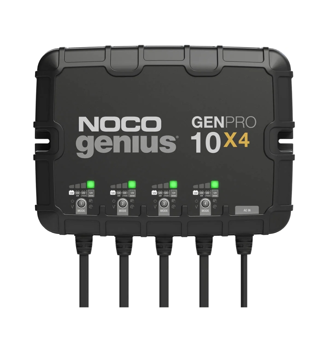 This is a NEW NOCO Genius GENPRO10X4 4-Bank 40A (10A/Bank) Smart Marine Battery Charger. It has NEVER been used and just pulled out of my new boat once it arrived as I decided to switch to Lithium. $350.00 Shipped. **REDUCED**