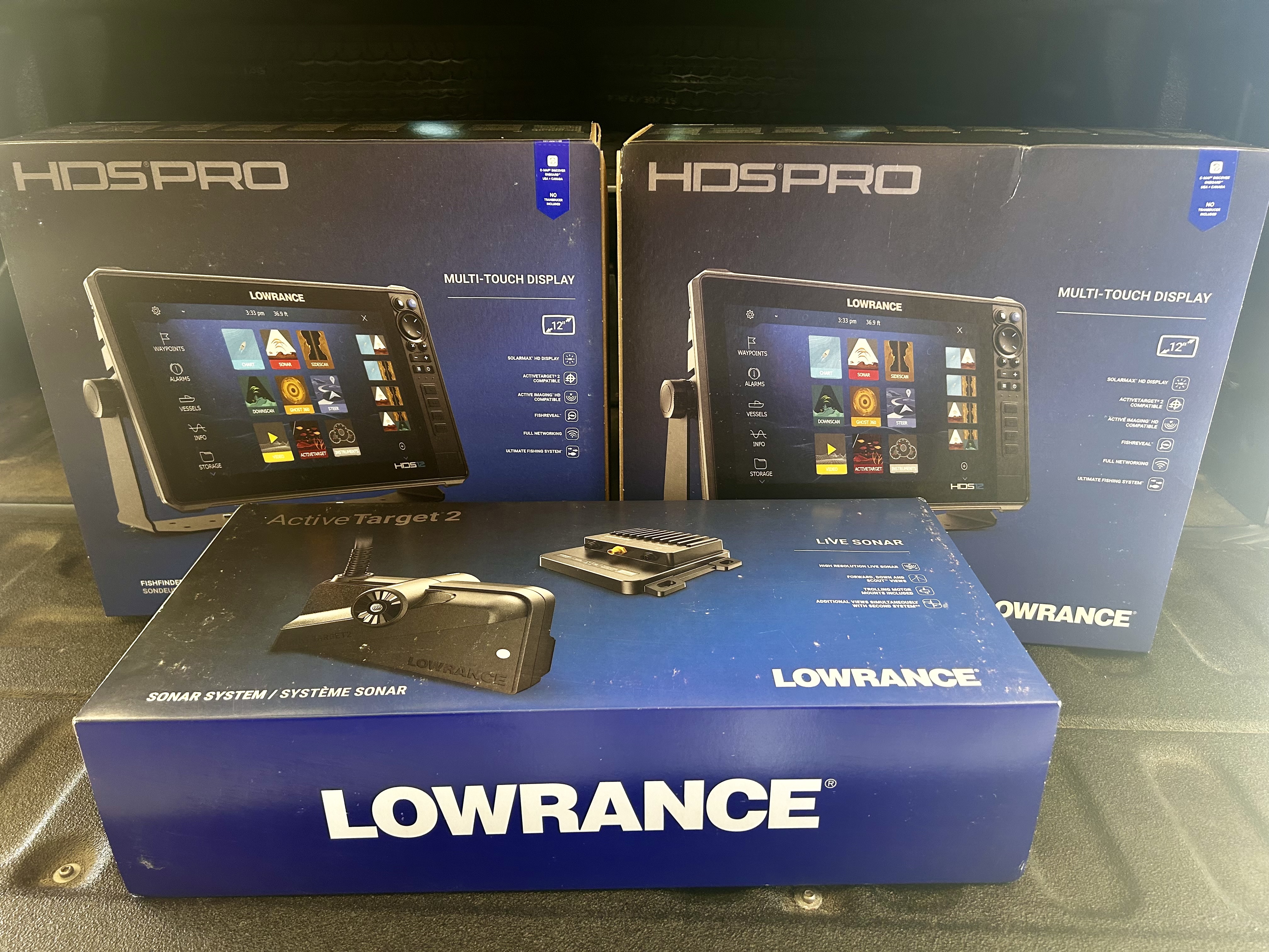 Selling 2 NEW Lowrance HDS Pro 12” units and 1 NEW Lowrance Active Target 2.