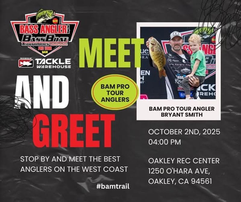 Meet all your favorite BAM Super 60 Anglers this Thursday Oct 2nd 4PM at the Oakley Rec Center 1250 O'Hara Ave, Oakley, CA 94561
