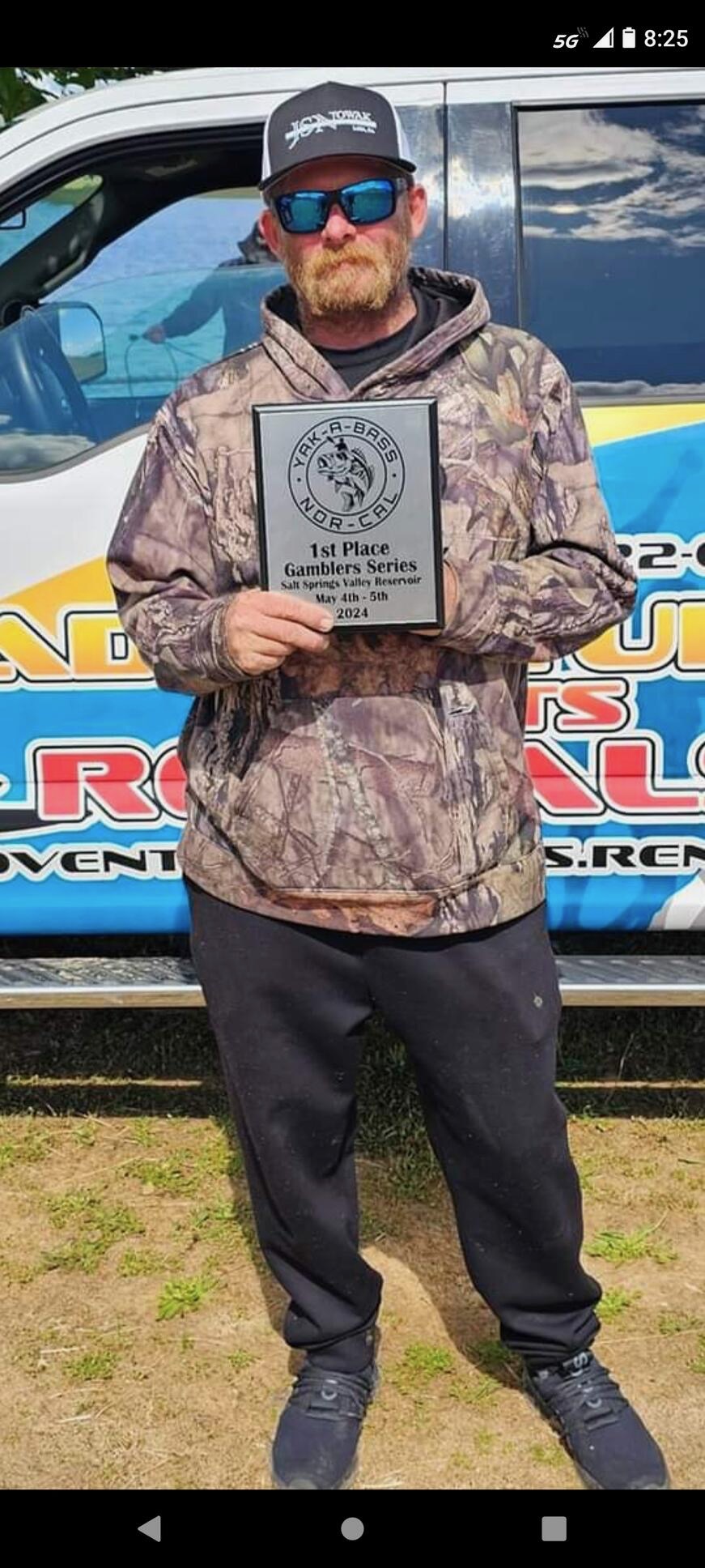 Yak-a-Bass held its Gamblers Series event at Salt Springs Valley Reservoir. The lake was at full pool with all the rain California has received this year. As normal, the weather was perfect for our feathered friends, ducks. Yes, the weather was predicted for winds and rain and yes it rained, and the wind blew, typical kayak tournament day. The storm moving in turned the fish into eating machines for some and others made it difficult to get a bite. Since the Gamblers tournaments are two-day events, the weather did a 180-degree turn to post frontal and cold Northerly winds on day-two compared to the rainy day-one.