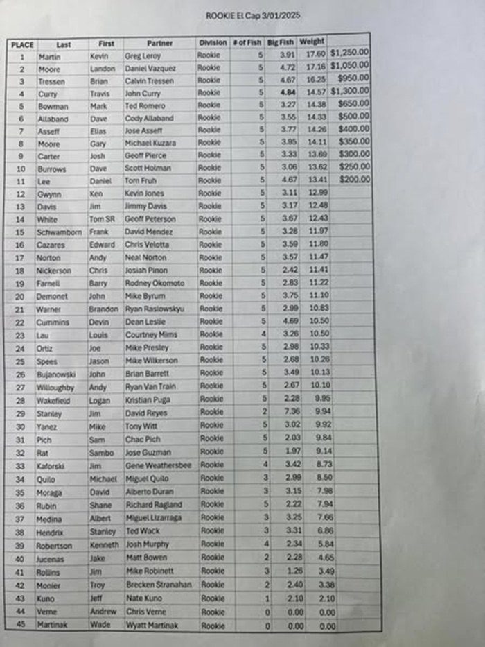 Great job to all the anglers who competed!