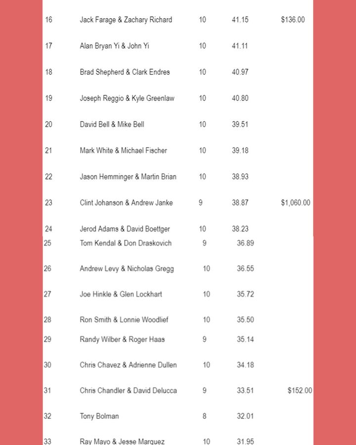 Aahh. I see. So Ish is not only a great angler, but also an excellent business man. Snatch up an easy $5700 and let the big sticks battle it out the following weekend for New Jen. Lol. Not to throw shade on anybody who fished ABA, but if you look at the qualify list for new jen, clearly the big guns were sitting this one out. But they still had to go out and sack up over 20 a day, so congrats guys!