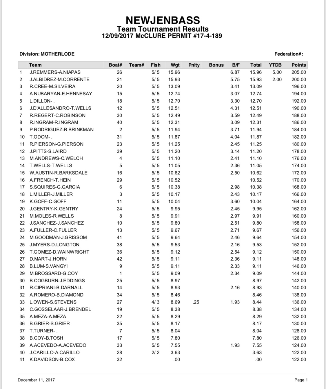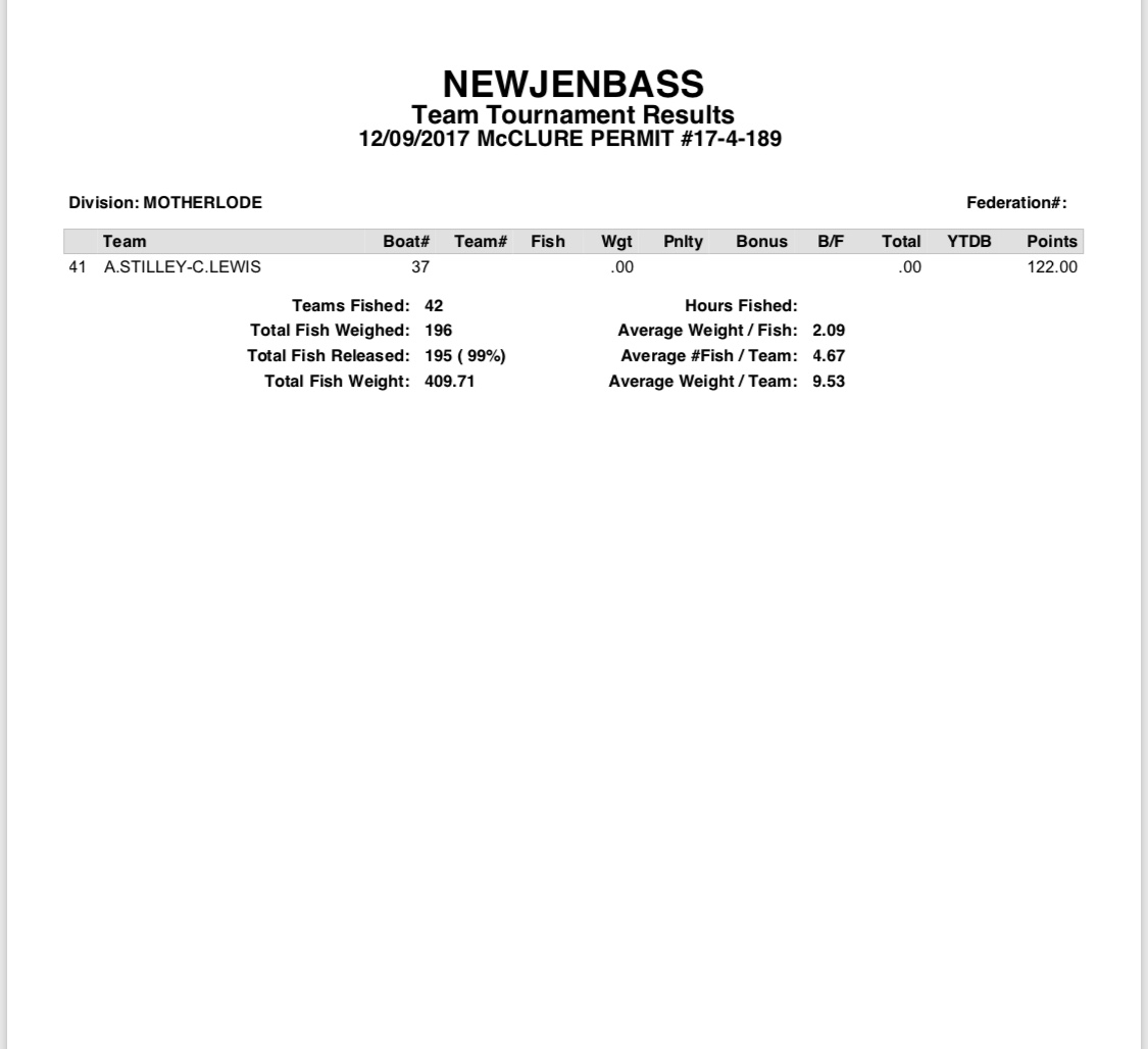 Just curious. So the rest of the field blanked? If not why aren't you posting all of the angler's weights?? I checked on your website and its the same format there as well??