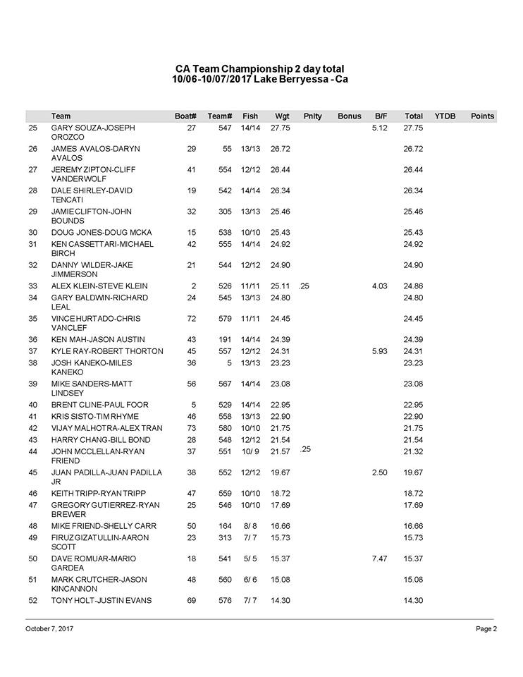 WWBT 2017 CA Teams Championship Berryessa Day 2 Results