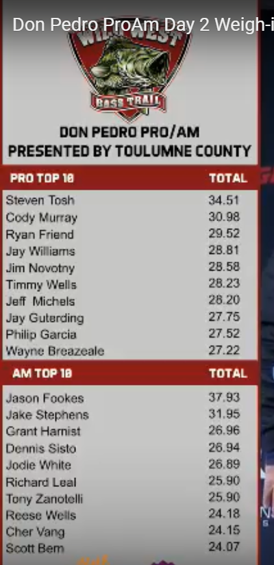 It is the top-10 pro and co-anglers listed on the leaderboard as the weigh-in closed on Day 2.